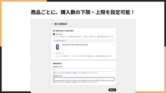 「シンプル購入制限|お手軽注文制限」は、商品ごとに、購入数の下限・上限を設定ができます。
