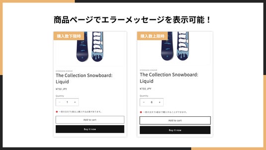「シンプル購入制限|お手軽注文制限」は、商品ページでエラーメッセージを表示ができます。