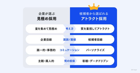 巡り合いの量や質という外的な要素は前提となり、いかに採用体験を磨き上げるか、その進化の為に必要で、かつ今はまだ無いフィードバックデータを生成し獲得することで、初めて内的な要素へ働きかけることが可能になり、採用の可能性が飛躍的に向上し、結果として組織そのものが強くなっていく。組織を強くすることに興味のない経営者はいないはずです。