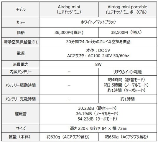 静音モード搭載!より便利に、使いやすくなった”持ち運べる空気清浄機”『Airdog mini』シリーズ 新登場