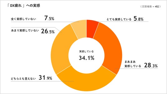 ・「DX疲れ」を感じている人は34.1%、その理由は「複数のシステムを使い分けることに難しさを感じている」「システム同士が連携していないことによる不便さを感じている」など