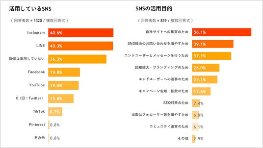 ・不動産業界でよく活用されているSNSは「Instagram」「LINE」、その目的は「自社サイトへの集客のため」が最多