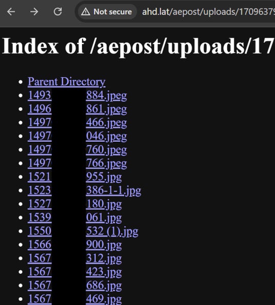 図5:「aepost」キャンペーンの被害者の一人から流出したサイトが削除される前の画像リスト