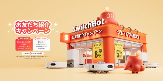 IoT・スマートホーム事業を手掛ける「IoTデバイスNo.1ブランド」(※2022年11月 家電Biz調べ)のSWITCHBOT株式会社(本社 : 東京都渋谷区)は、2024年9月19日(木)から10月2日(水)の期間限定で、「清掃の日応援キャンペーン」を開催。「スイッチボットで掃除がもっと楽しく」をスローガンに掲げ、新製品のSwitchBot ロボット掃除機K10+ Proをはじめ、お掃除ロボットS10やK10+などを含む、ロボット掃除機全製品を対象に、Amazon公式店舗、公式サイト、楽天公式店舗から最大23%OFFになる大幅割引セールを実施いたします。