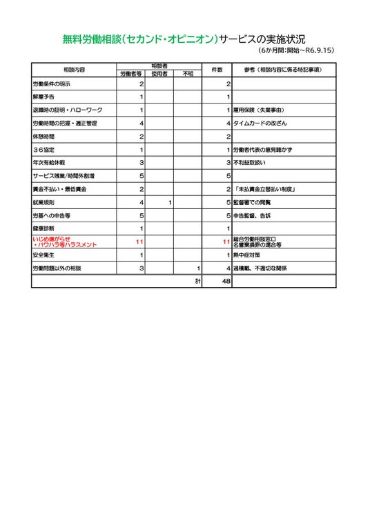 無料労働相談(セカンド・オピニオン)の実施状況