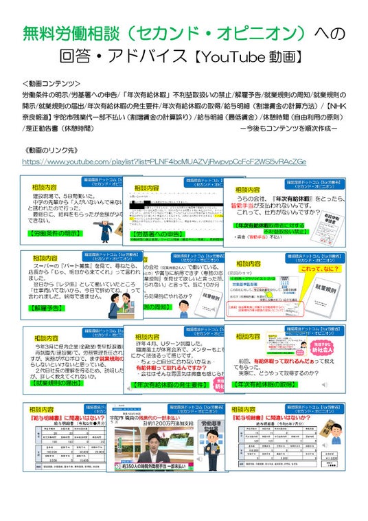 また、別添2.のとおり、寄せられた相談に対する回答・アドバイス動画を作成してYouTubeに掲載しています(※相談内容の匿名性に、最大限配慮しています。)