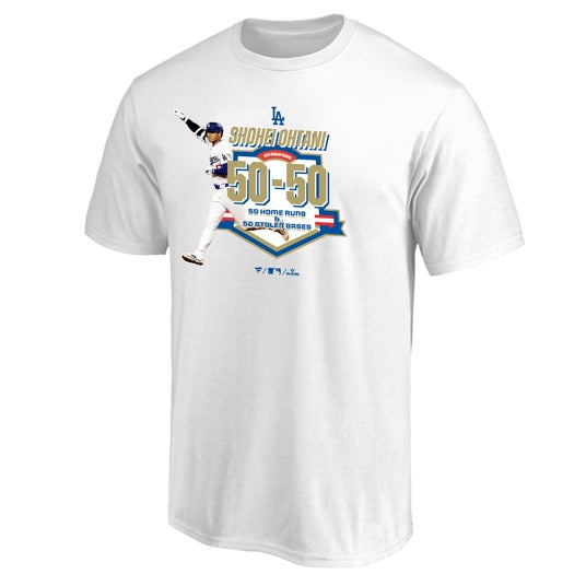 2)大谷翔平 50-50 達成記念Tシャツ ホワイト/ブルー