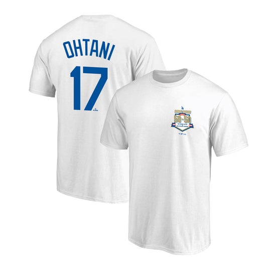 3)ドジャース大谷翔平ネーム&ナンバーTシャツ ホワイト/ブルー