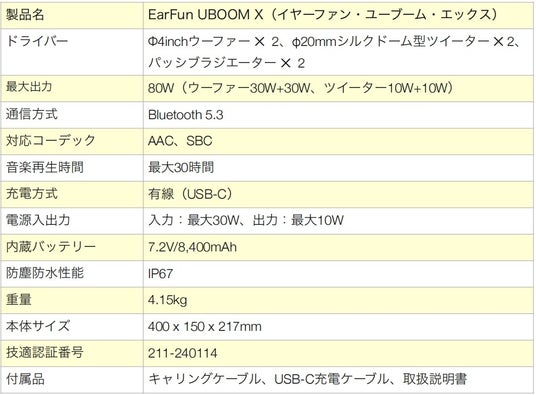 4ドライバー80Wの重低音とIP67防塵防水のタフなパーティースピーカー「EarFun UBOOM X」 発売