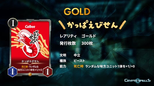 CryptoGamesが運営するブロックチェーンゲーム「CryptoSpells」は、カルビーの「じゃがりこ」と「かっぱえびせん」とのコラボNFT販売をSBINFT Marketにて9/16から現在販売しております。