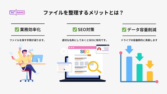 日々大量の画像ファイルを扱うクリエイターやマーケッターにとって、ファイル整理は大きな課題です。適切なファイル名に変更することで、業務効率化、SEO対策、ストレージ容量削減など、多くのメリットが得られます。しかし、手作業でのファイル整理は非常に手間と時間がかかり、業務の妨げになることも少なくありません。