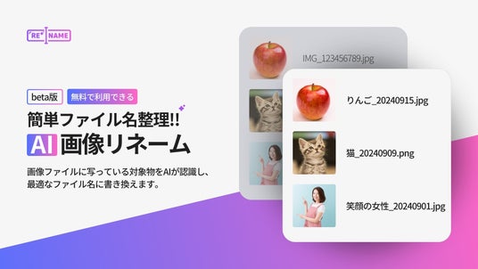 簡単ファイル名整理!AIが画像を自動リネーム「AI画像リネーム」、無料会員機能ベータ版リリース