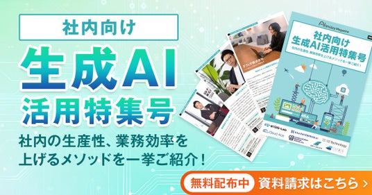 Web雑誌「社内向け生成AI活用特集号」(PDF資料)をお求めの企業担当者様は、 下記お問い合わせフォームに必要事項記入のうえ送信ください。