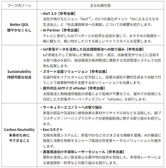 シャープは、2024年10月15日(火)から18日(金)まで幕張メッセ(千葉市美浜区)で開催される「CEATEC 2024」に出展します。当社は「AI-Powered Innovation」をテーマに、「Better QOL」、「Sustainability」、「Carbon Neutrality」の3つのゾーンにて、持続可能な社会と健やかなくらしの実現に向け、AI関連技術を中心とした先進のソリューションを提案します。