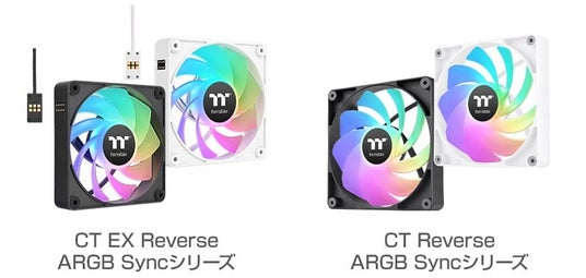 Thermaltake社製、リバースファンブレードを搭載したARGBファン「CT EX Reverse ARGB Sync」シリーズと「CT Reverse ARGB Sync」シリーズを発表