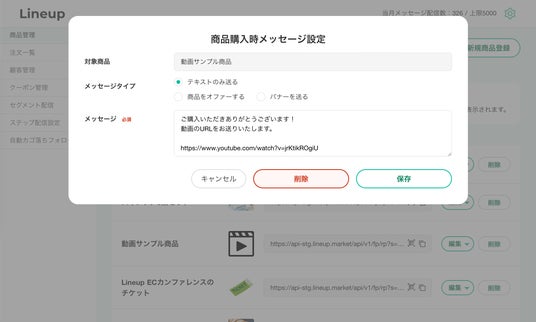 利用者様のご要望に応え、商品購入時のLINEメッセージ自動送信機能をリリース致しました。