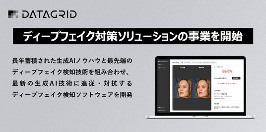 生成AIを活用して産業DXに挑む株式会社データグリッド(本社:京都市左京区、代表取締役CEO:岡田 侑貴、以下「データグリッド」)は、長年蓄積された生成AIのノウハウと最先端のディープフェイク検知技術を組み合わせ、最新の生成AI技術に追従・対抗できるディープフェイク対策ソリューションの事業を開始したことをお知らせいたします。