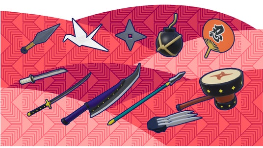 飛び道具には相手をひるませる効果や吹き飛ばす効果があります。ただし当てても敵を倒すことはできません。こちらも初期装備の手裏剣のほかに、クナイ・爆弾・うちわ・折り鶴の4種類があり、それぞれに一長一短の特徴があります。