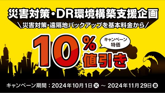 クラウドストレージで更なるドキュメント活用を推進する株式会社ダイレクトクラウド(本社:東京都港区、代表取締役:安 貞善、以下ダイレクトクラウド)は、法人向けクラウドストレージ「DirectCloud」で提供している災害対策・遠隔地バックアップのオプション機能をDirectCloudご契約企業様及び新規ご契約いただいた企業様を対象に2024年10月1日~11月29日の間にお申込みをしていただくと、最大12ヶ月間※1災害対策・遠隔地バックアップを10%引きでご提供いたします。