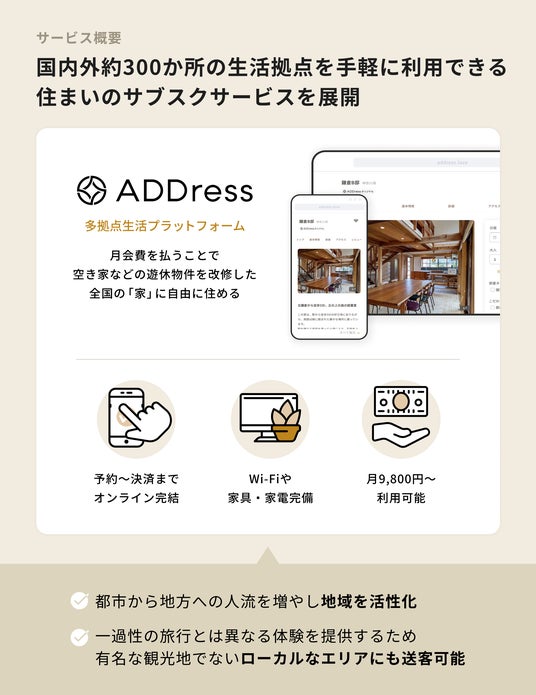 有名投資家も多数参加。国内外約300か所の家で多拠点生活を叶える住まいのサブスク「ADDress」、イークラウドを通じた2回目の資金調達を9月28日に開始