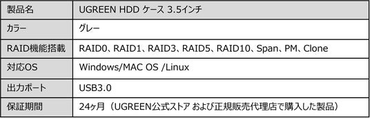 最先端の技術を採用して信頼性の高いPCやスマートフォン周辺機器などを開発・生産している株式会社ユーグリーン・ジャパン (本社:東京都千代田区)は、RAID機能搭載「HDD ケース 3.5インチ」を9月10日(火)より販売しております。