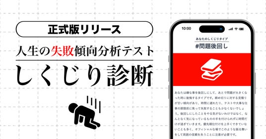 株式会社Questi(本社:東京都渋谷区、 代表取締役社長:齋藤智也)は、かねてよりβ版で提供しておりました「しくじり診断」の正式版の提供を本日より開始いたしました。