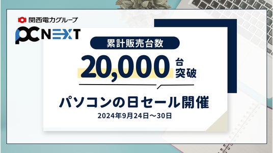 関西電力グループの再生パソコン専門店「PC next」はおかげさまで累計販売台数20,000台を突破しました。それを記念し「パソコンの日」セールを7日間開催します。