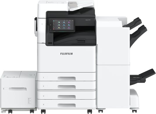 フラッグシップモデルとなる「Apeos C7071」シリーズ※3は、オフィスのセンターマシンとして業務遂行の中核となる複合機です。印刷速度70枚/分から25枚/分までの計6商品をラインアップしており、高速・中速機となる「Apeos C7071 」など※4では、1パス両面自動読み取りで毎分270ページの高速スキャンが可能です。業種業務を問わず、さまざまなオフィス環境で紙文書の電子化をスムーズに行えます。また、中速・低速機となる「Apeos C5571」など※5では、毎分160ページの1パス両面自動読み取りに加え、名刺やレシートサイズの用紙を連続で自動読み込み可能なスキャナーを搭載し、社内での情報共有や経費処理作業などを効率的に行えます。さらに、「Apeos C7071」シリーズ※6では、出力時に針なしステープル機能※7やZ折り・三つ折り※8などの多彩な後処理工程にも対応します。