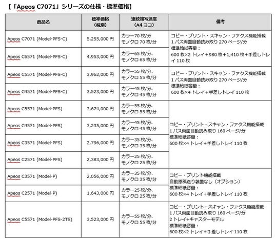※6:Apeos C5571 (Model-PFS-2TS)を除く