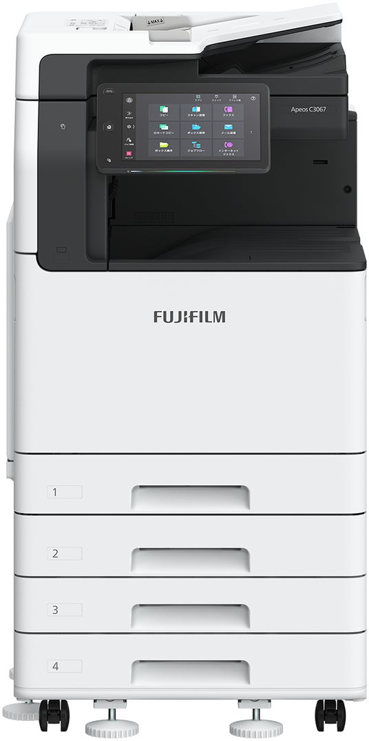 富士フイルムビジネスイノベーション株式会社(本社:東京都港区、代表取締役社長・CEO:浜 直樹)は、業務ソリューションとの連携を強化したA3デジタルカラー複合機「Apeos」シリーズの3機種10商品を、10月21日から発売します。今回発売する3機種のうち「Apeos C7071」シリーズは、A3デジタルカラー複合機の商品ラインアップを一新するフラッグシップモデルで、「Apeos C3067」と「Apeos C3061」シリーズは中小企業向けのコンパクトモデルです。「Apeos C3067」では、お客様の業務効率化を支援する複合機追加型アプリケーションを標準搭載し、「Apeos C3061」シリーズでは、複合機の基本機能に加え、さまざまなトレイ構成でお客様の使い方に柔軟に合わせることが可能です。富士フイルムビジネスイノベーションは、お客様の用途にあわせた同3機種の販売を通じ、オフィスのDX(デジタルトランスフォーメーション)を支援します。