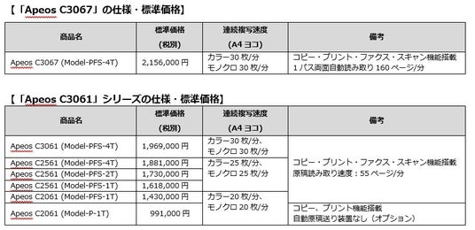 ※14:Apeos C2061 (Model-P-1T)はコピー・プリント機能搭載