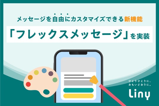 初心者でも簡単に、ゼロから自由にレイアウトを作成できるメッセージ。写真や動画、テキストを好みの位置に配置し、読み手のアクションを誘導できる。また、Linyの顧客情報と連動し、パーソナライズされた配信が可能。