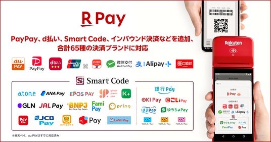 「楽天ペイ」実店舗決済、「PayPay」「d払い」「Smart Code(TM)」、インバウンド決済などを新たに追加、合計65種の決済ブランドに対応