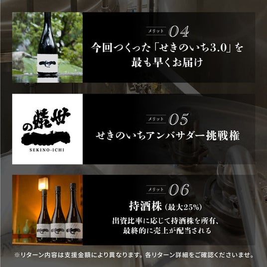 このプロジェクトは、2024年10月13日(金)までの期間限定で、『SAKEクラファン』(URL:https://sake-kurafan.com/products/sekinoichi3 )にて実施され、一次目標金額は50万円です。