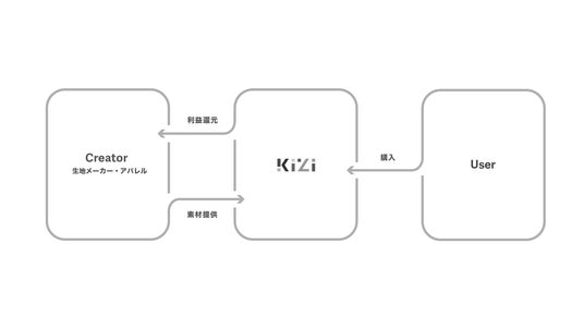 倉庫に眠る大量の生地アーカイブ100年前の日本固有の生地などが倉庫に眠っています。原料が生産中止になっている、設備が無いなどの理由で活用され難い状況になっています。このような眠った生地に新しい命を吹き込み、廃業がつづく生地業界に新しいビジネスモデルを提供する事で活性化に繋げる想いでKIZIを開発しました。産地である尾州・桐生・泉南・北陸の合計70社以上の企業が登録しています。