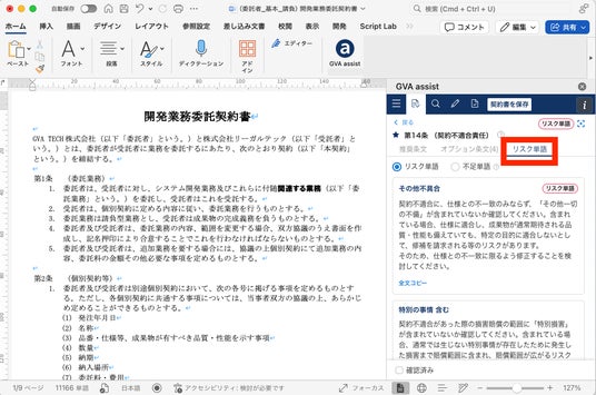 契約書レビュー支援クラウド「GVA assist」がリスクチェック機能をアップデート