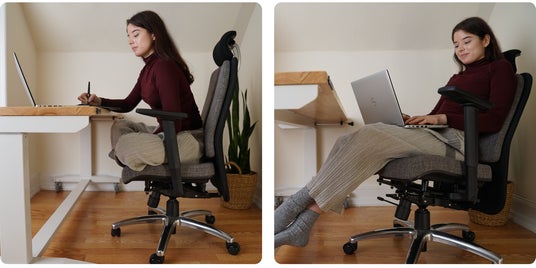 Duo Reliefは、どんな姿勢でも快適に座れるように設計されています。後ろに寄りかかったり、まっすぐ座ったり、あぐらを組んだりと、どんな体勢でもしっかりサポートします。これにより、これにより自宅での仕事中の集中力及び生産性が上がり、また、一息リラックスしたいときにも快適に過ごせます。