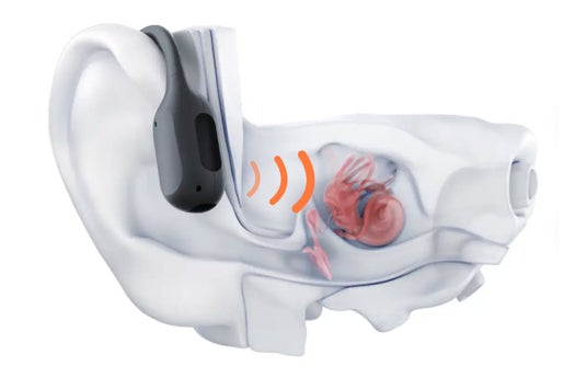 骨伝導技術のメリット骨伝導技術は、古くから研究が続けられている安心で安全性が高い技術です。もともと、難聴を持つ人への補聴器として開発された経緯があり、現在でも骨伝導を活用した補聴器が実用化されています。骨伝導とは音の発生による空気振動を使わず骨を介して音が聴覚に伝わるものです。一例としてクッキーを食べたときに、口の中から感じる咀嚼(そしゃく)音がありますが、このような音の伝わり方が骨伝導です。骨伝導は耳を塞がないので、骨から伝わって聞こえる音と、周囲の音を同時に聞くことができます。また、耳に何も入れることはないため、外耳炎などの耳のトラブルのリスクはありません。