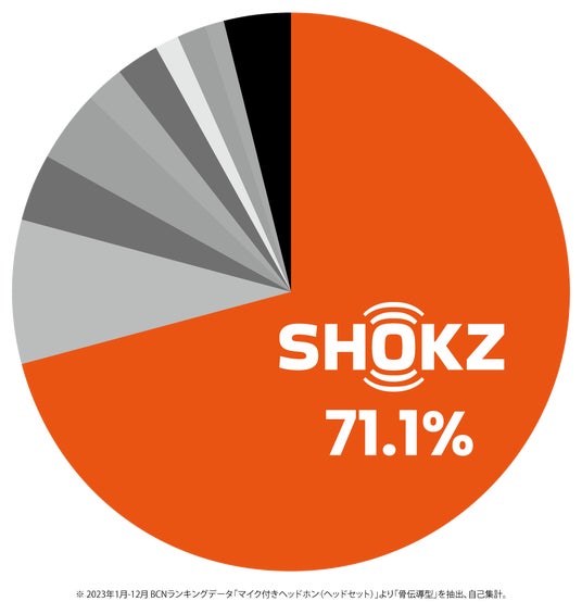 2023年1月1日~2023年12月31日のBCNランキングデータにより、「骨伝導型」販売台数が1位、台数別シェア1位(※)を記録しました。