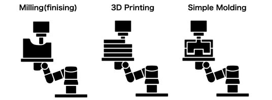切削加工(オプションユニットは現在開発中)/3Dプリンター/簡易射出成形機として利用可能
