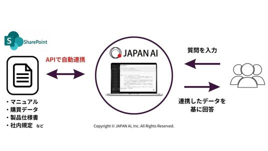 JAPAN AI株式会社(本社:東京都新宿区、代表取締役社長:工藤 智昭、以下JAPAN AI)は、提供しているAIサービス「JAPAN AI CHAT」、「JAPAN AI SALES & MARKETING」において、Microsoft Corporation(本社:アメリカ合衆国ワシントン州、CEO:Satya Nadella、以下Microsoft Corporation)が提供するストレージサービス「SharePoint」とのAPI連携に対応したことをお知らせします。