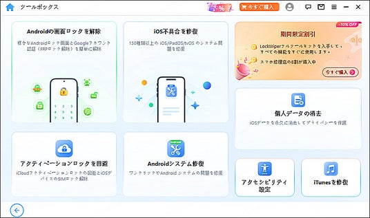 また、最新バージョンではツールボックスも追加しました。スマホに関するあらゆる不具合を解決できるツールを提供します。