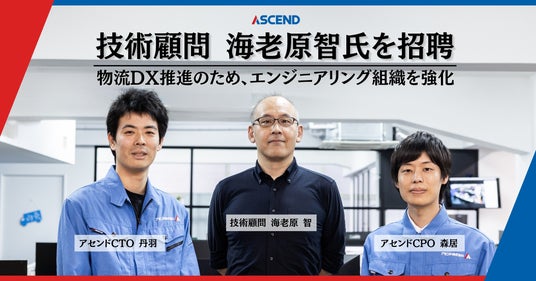 物流DXを推進するアセンド株式会社(本社:東京都新宿区、代表取締役:日下瑞貴、以下「当社」)はエンジニアリング組織強化のため、技術顧問として株式会社カケハシ等でCTOを歴任してきた海老原智氏を招聘したことをお知らせします。今後、物流DXの推進を担うプロダクトの進化のため、積極的な採用活動を行っていきます。
