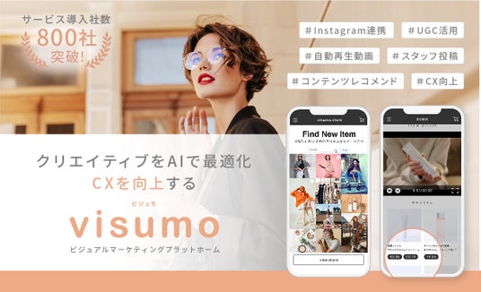 導入実績は800社を超え、Instagram連携UGC活用機能をはじめ、ビジュアルコンテンツのAIレコメンド機能、動画接客機能、スタッフ投稿機能、SNSライクなユーザー体験を提供できる各種テンプレートなど、ビジュアルでサイトのCVR・回遊率・滞在時間等を向上させるための機能をAll in Oneで提供しています。