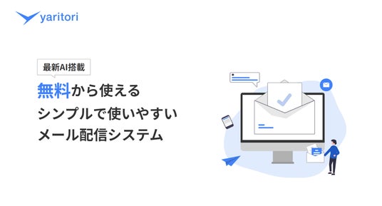 「yaritori メール配信」は、無料から使えるシンプルで使いやすいメール配信システムです。生成AIによりメール配信文の作成を支援する機能も搭載しています。