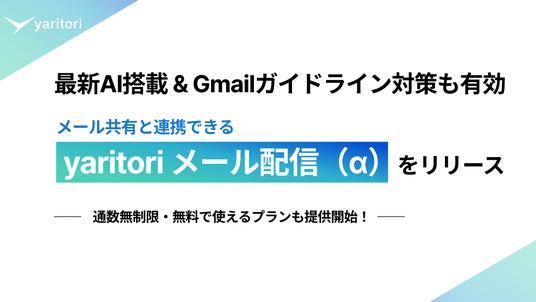 最新AI搭載でGmailガイドライン対策にも有効!メール共有と連携できる「yaritori メール配信」α版をリリース