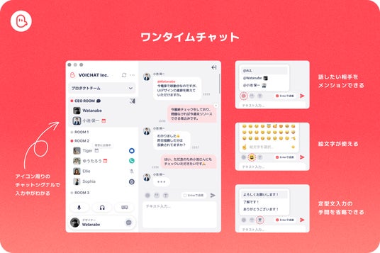 といった使い方ができるようになり、VOICHATが誇る「いつでも・どこでも『ちょっといい?』」がさらに加速します。