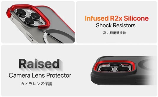 TPUのクリアケースに耐衝撃性能とMagSafeリングをアドオンしました。なるべくシンプルなケースがいいけど落としたときに不安、という方にピッタリのケース。スッキリした見た目に高い耐衝撃性能を備えます