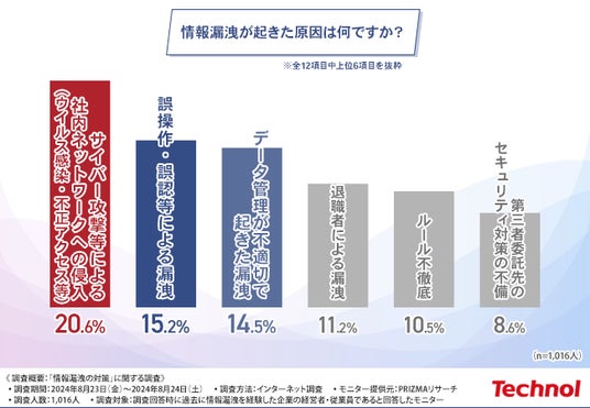 株式会社テクノル(所在地:青森県八戸市、代表取締役社長:千葉 哲也)は、過去に情報漏洩を経験した企業の経営者・従業員を対象に、「情報漏洩の対策」に関する調査を実施しました。