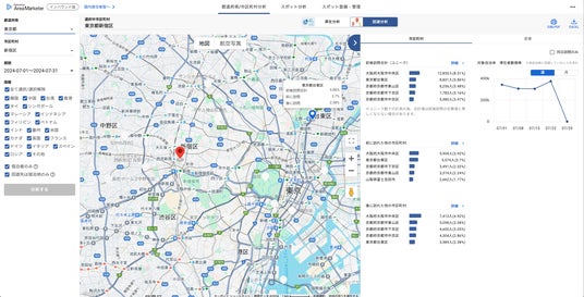 Datawise Area Marketer インバウンド版 回遊分析機能 ダッシュボード画面